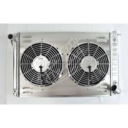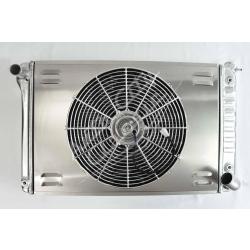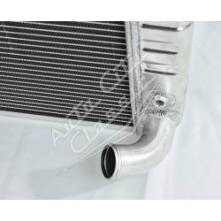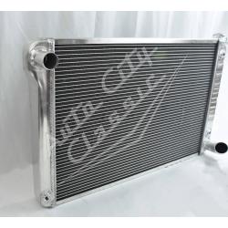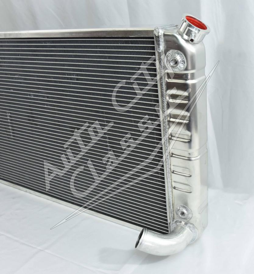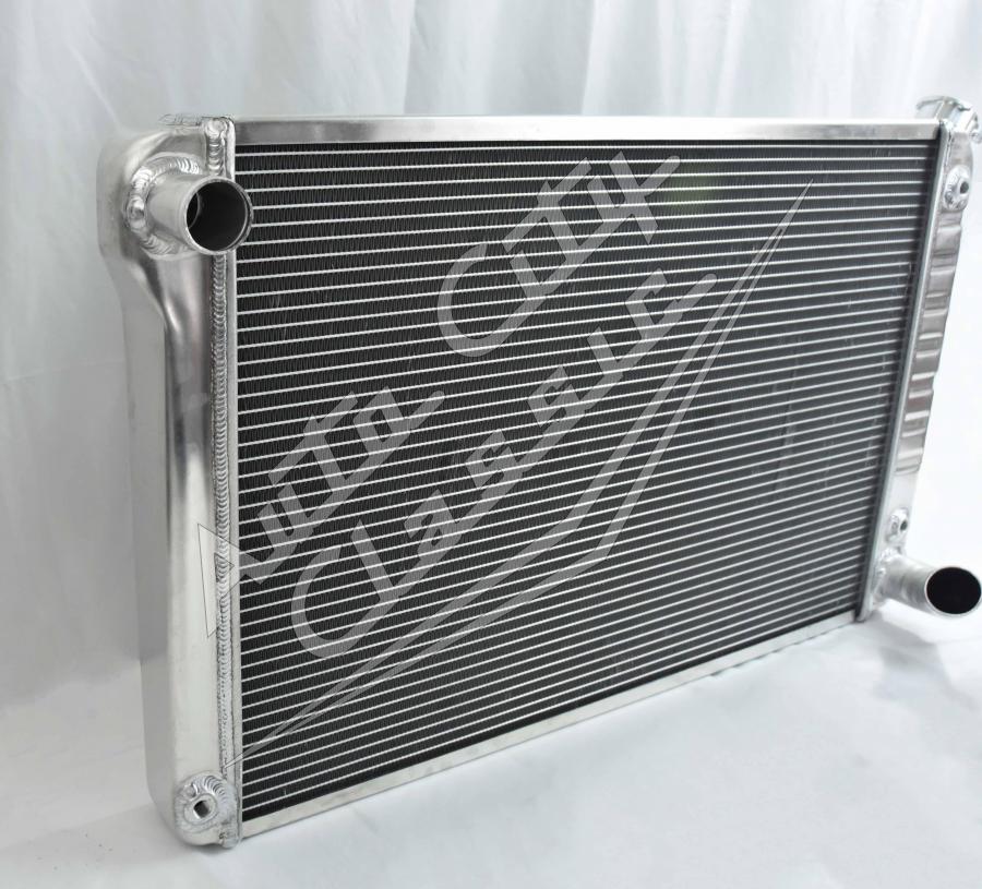 Direct replacement bolt in aluminum radiator with built in transmission cooler and dual 1 1/8" high flow tubes for maximum cooling.